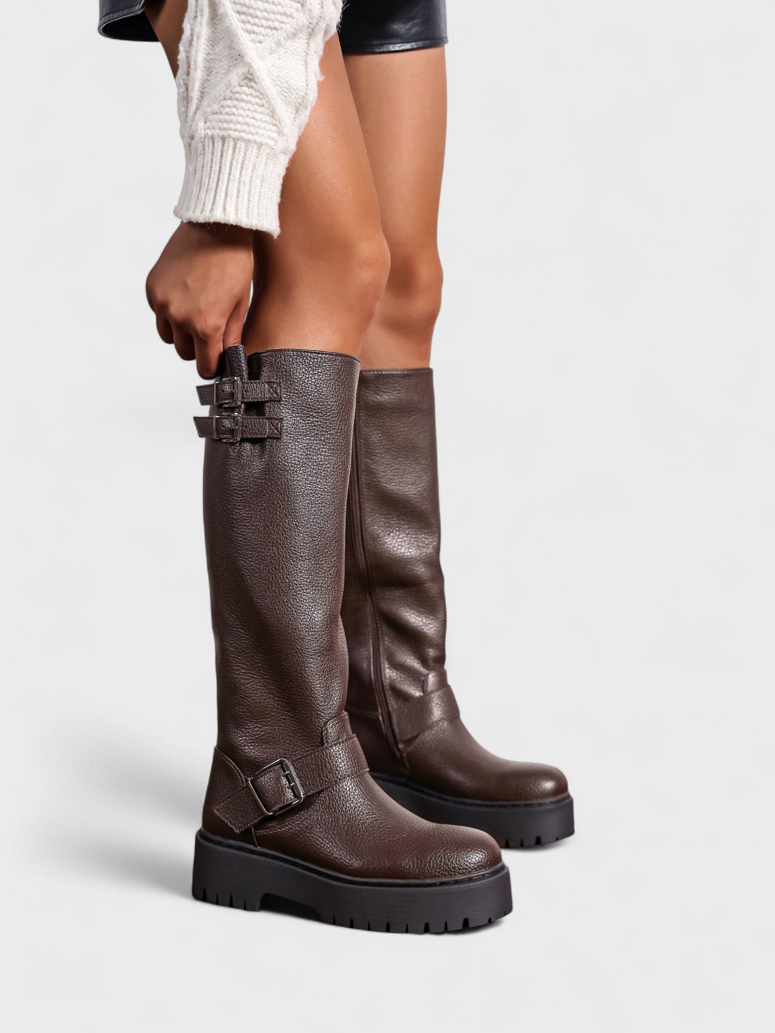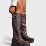 Rosa | Aukštos batai yra tvirti, stilingi ir itin patogūs. Pagaminti iš tvirto PU odos ir su didelėmis sagtimis bei masyviu padu: šie batai suteikia kiekvienam įvaizdžiui jėgos. Nesvarbu, ar juos derinsite su megztiniu suknelė, ar odinėmis legging'omis—esate pasiruošę sezonui.