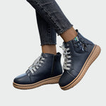 Sportiniai batai juoda spalva su moderniu ir jaunatvišku dizainu. Jie turi šviesiai pilkus raištelius, kurie sukuria elegantišką kontrastą, taip pat šoninę užtrauktuką, kad būtų lengviau užsidėti. Minkšta vidinė pamušalas užtikrina komfortą, o tvirta neslidžios pado konstrukcija garantuoja stabilų žingsnį. Puikus pasirinkimas kasdieniam atsitiktiniam dėvėjimui su stiliaus akcentu.