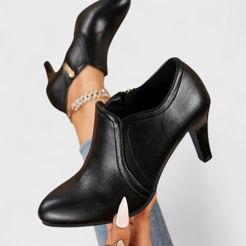 • Dizainas: Moteriški batai su elegantiška nosimi, šoniniu užtrauktuku ir švariomis linijomis, kurios tinka bet kokiam įvaizdžiui.