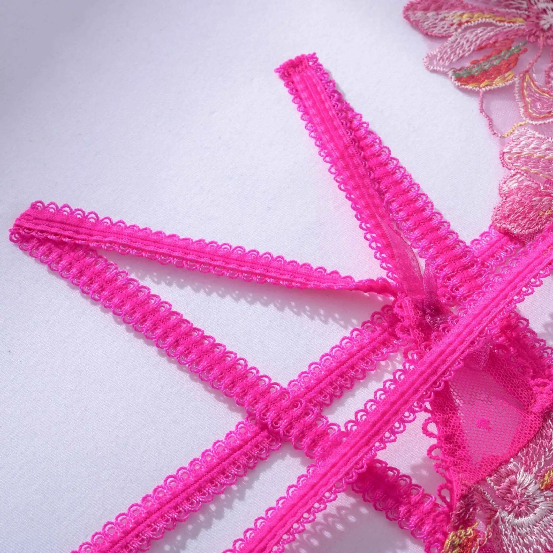 atraskite Fiorenza | Elegantiškas apatinis trikotažas rinkinį, viliojantį ansamblį, kuris harmoningai sujungia eleganciją ir komfortą. Šis prabangus rinkinys, pagamintas iš aukščiausios kokybės poliesterio, apima liemenėlę, kelnaites ir kojinę, specialiai sukurtą pabrėžti jūsų natūralią grožį. Išskirtinė subtilios nėrinių ir gėlių siuvinėjimo kombinacija suteikia jums rafinuotumo ir patrauklumo jausmą, puikiai tinkančią romantiškoms vakarienėms ar ypatingoms progoms.