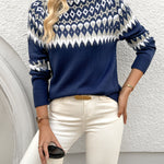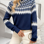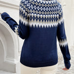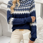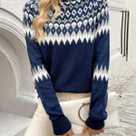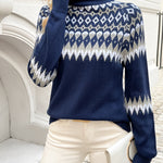 Elegantiškas Geometrinis Megztinis Ella™ yra tobulas balansas tarp rafinuotumo ir patogumo. Su savo patraukliu geometriniu raštu ir šiuolaikišku aukštu kaklu, šis megztinis puikiai tinka nešioti sluoksniais arba vieną. Pagamintas iš aukštos kokybės poliesterio, jis sukurtas visoms sezonams, užtikrinant, kad visus metus išliktumėte elegantiška ir patogi.