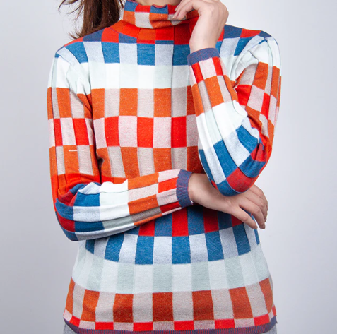 Erika - Megztinis su Aukštu Kaklu Patchwork