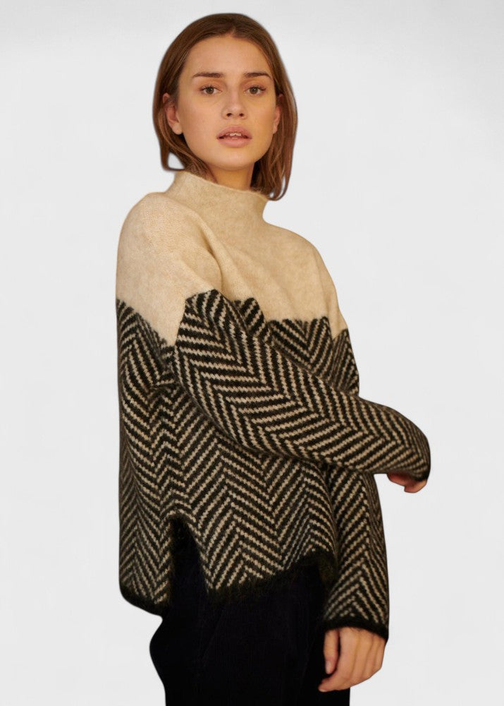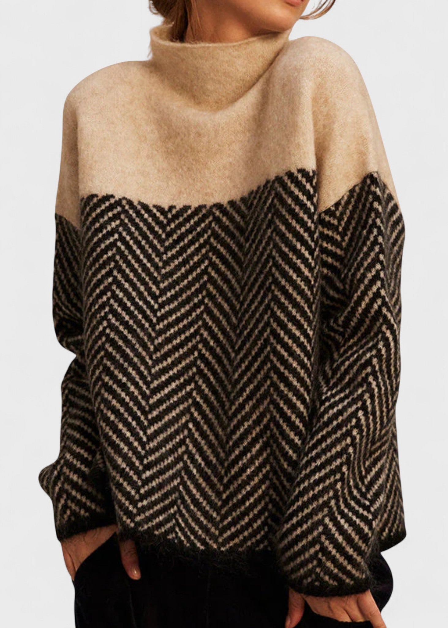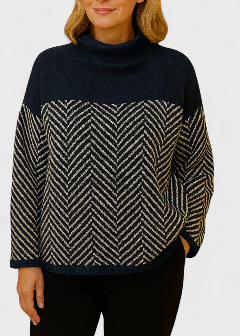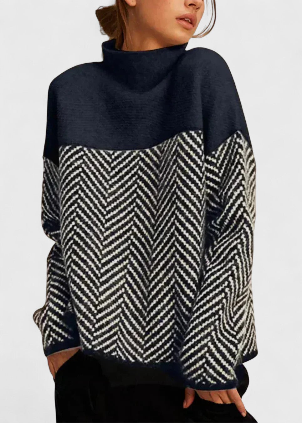 Šis megztinis turi patrauklų zigzago raštą, kuris suteikia unikalumo jūsų aprangai šaltu oru. Derinkite jį su savo mėgstamomis kelnėmis ar sijonu, kad sukurtumėte šiuolaikišką ir rafinuotą įvaizdį, kuris spinduliuoja eleganciją.
