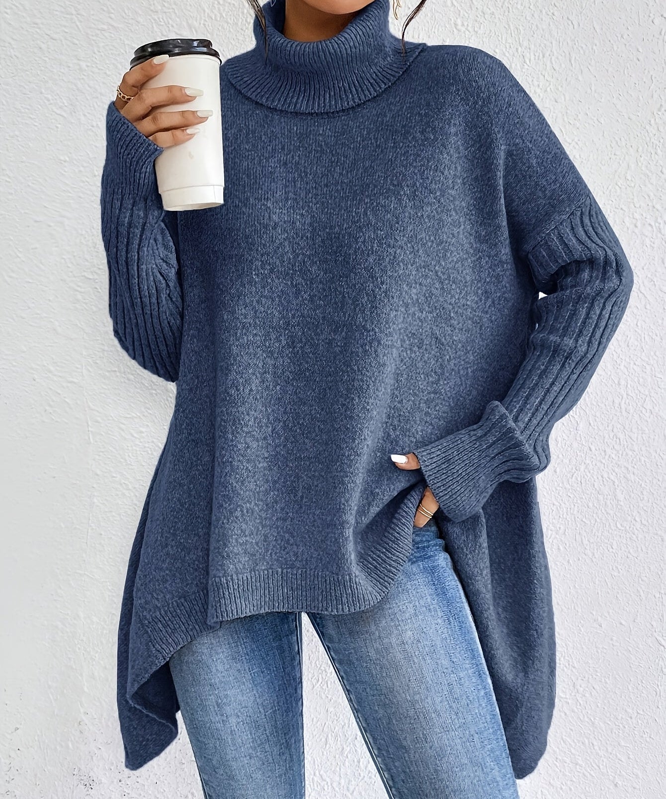 Samanta | Medvilninis megztinis su aukštu kaklu