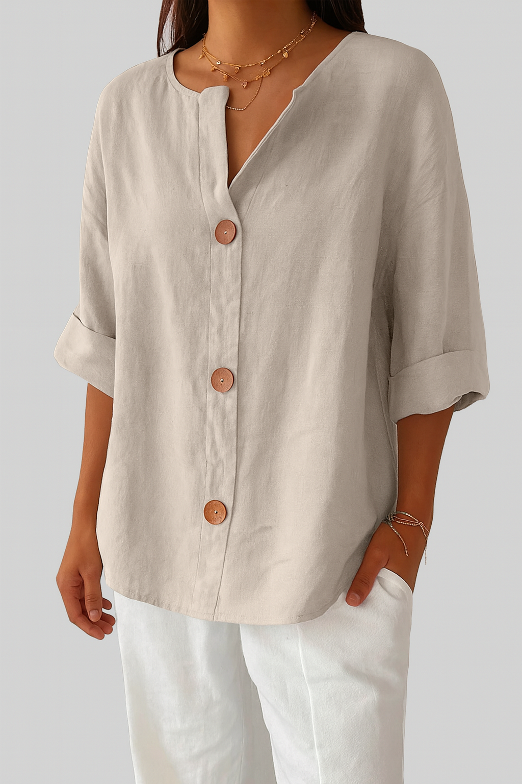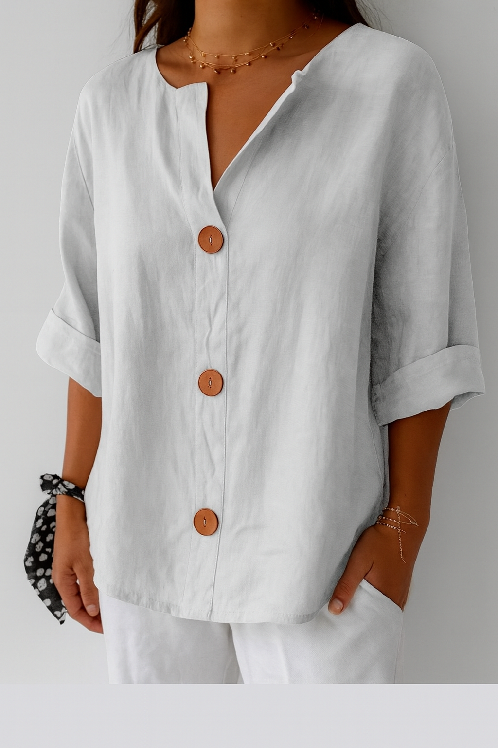 Pagaminta iš aukštos kokybės medžiagos, leidžiančios odai kvėpuoti, ši blusa yra puiki, kad galėtų tave lydėti kasdienėje rutinoje. Jos dizainas, sukurtas komfortui, švelniai priglunda prie kūno, vengiant diskomforto ir užtikrinant lengvumą visą dieną. Kruopščiai parinkta medžiaga suteikia puikų balansą tarp švelnumo ir atsparumo, garantuodama, kad drabužis išlaikys savo gaivumą ir formą net po daugelio skalbimų.