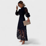 Su savo subtiliais siuvinėjimais ir struktūriškomis klostėmis, ši suknelė sukuria nuostabų ir laisvą siluetą. Minkštas audinys leidžia odai kvėpuoti net ir karštomis dienomis, o šiek tiek susiraukšlėtos ilgomis rankovėmis ir aukštu apykakle suteikia rafinuotą ir amžiną akcentą.
