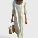 Suknelė Feliane sujungia eleganciją ir natūralų komfortą. Sukurta moterims, kurios karštomis dienomis nori derinti stilių, lengvumą ir judėjimo laisvę.