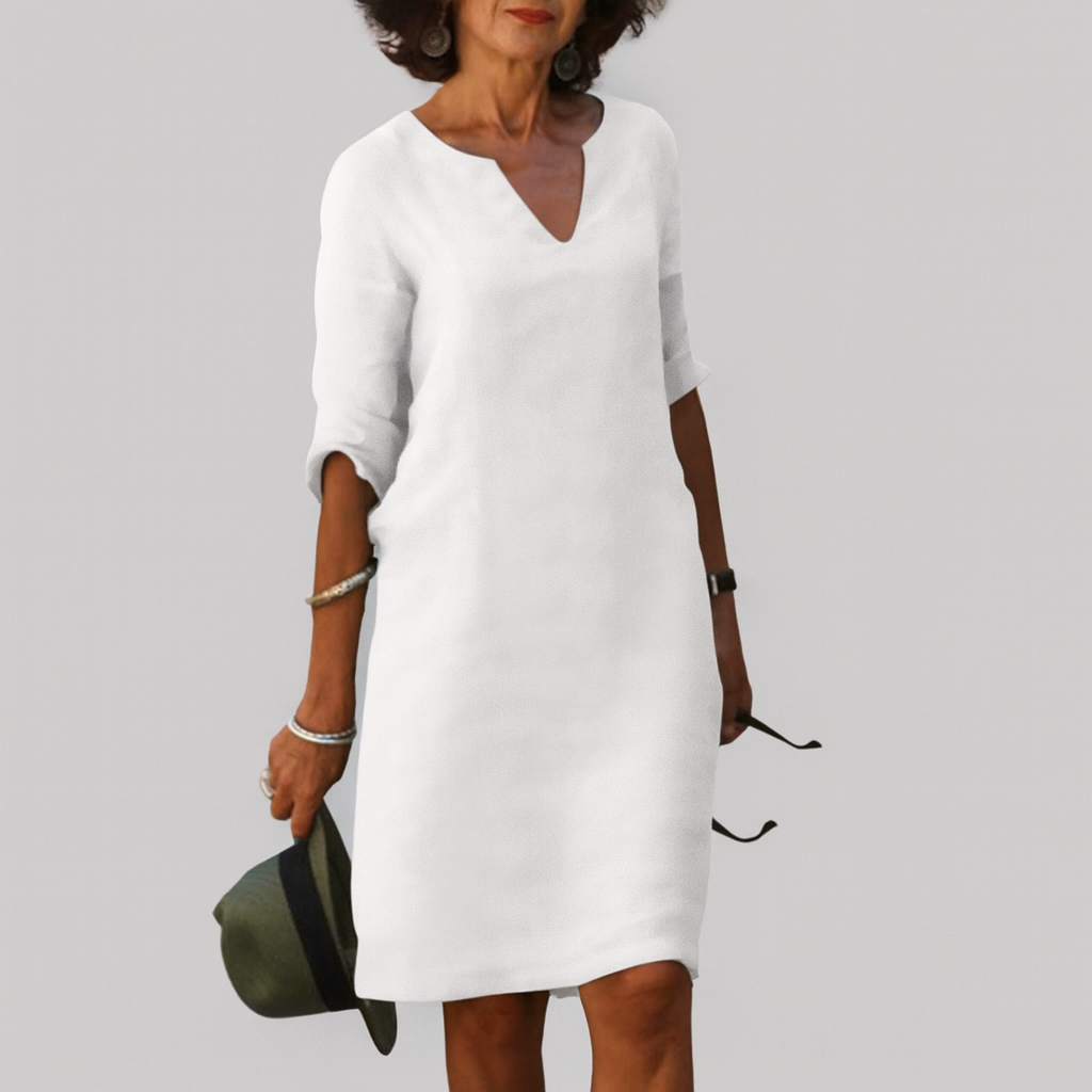 Ši suknelė yra lengva ir labai šviežia, pagaminta iš audinio, kuris leidžia odai kvėpuoti net ir karščiausiomis dienomis. Jos sklandus dizainas pabrėžia siluetą ir užtikrina komfortą bei judėjimo laisvę. Ji idealiai tinka tiems, kurie ieško praktiško įvaizdžio, neprarandant elegancijos, puikiai tinka pasivaikščiojimams, šventėms lauke ar kasdieniam dėvėjimui. Be to, ji lengvai derinama su įvairiais aksesuarais, suteikdama tavo stiliui gaivumo ir natūralios rafinuotumo.