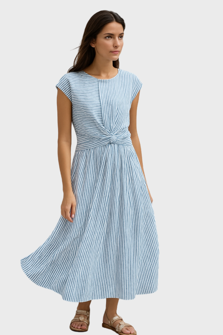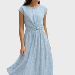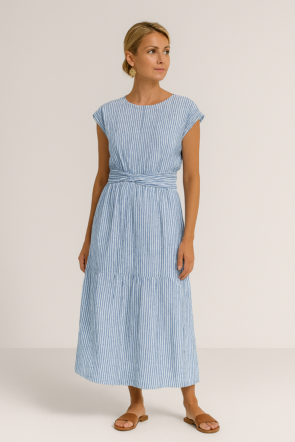Ideali suknelė šviesioms dienoms, pagaminta iš lengvos medžiagos, kuri švelniai glosto odą ir sklandžiai pritaikoma prie kūno. Jos gaivus ir atsipalaidavęs dizainas paverčia ją būtina dalimi natūraliam ir žaviam įvaizdžiui. Puikiai tinka tiems, kurie nori apsirengti lengvai, neatsisakydami gero skonio.