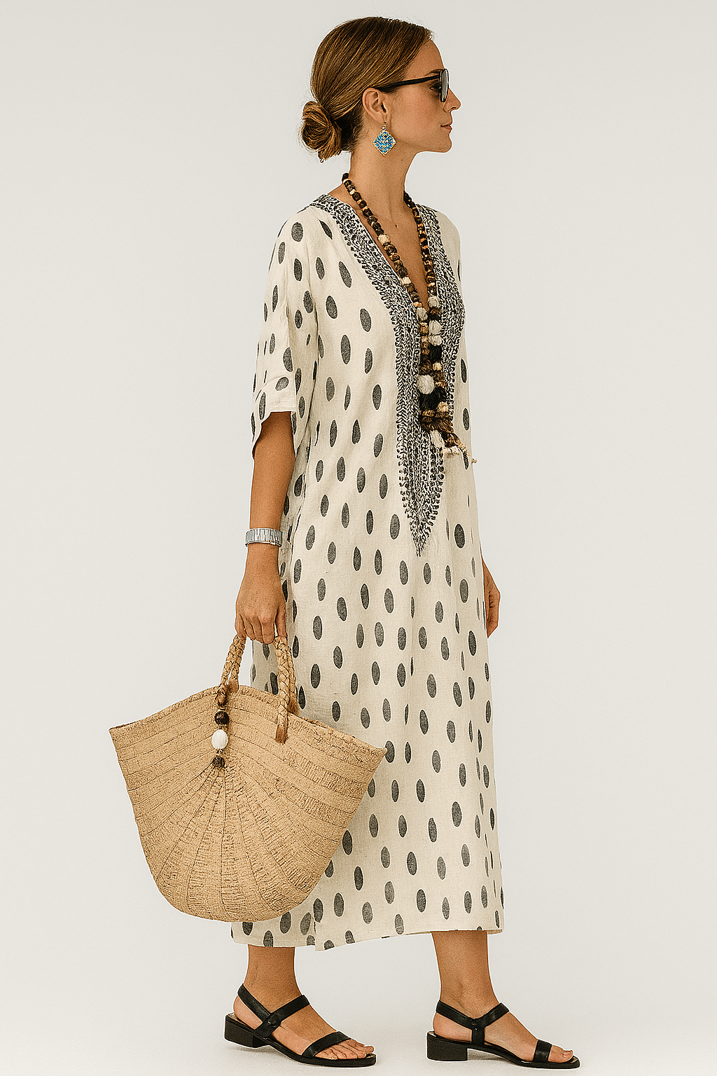 Ideali suknelė saulėtoms dienoms, pagaminta iš lengvos medžiagos, kuri glosto odą ir švelniai prisitaiko prie kūno. Jos gaivus ir atsipalaidavęs dizainas daro ją nepakeičiamu drabužiu natūraliam ir žavingam įvaizdžiui. Puikiai tinka tiems, kurie nori vilkėti lengvai, nesumažindami gero skonio.
