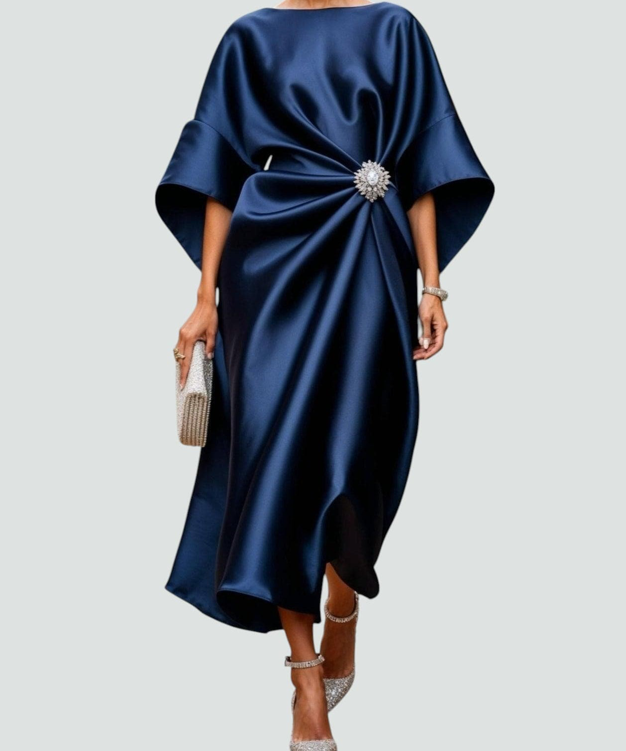Eldra | Satino jausmo batwing rankovė maxi suknelė