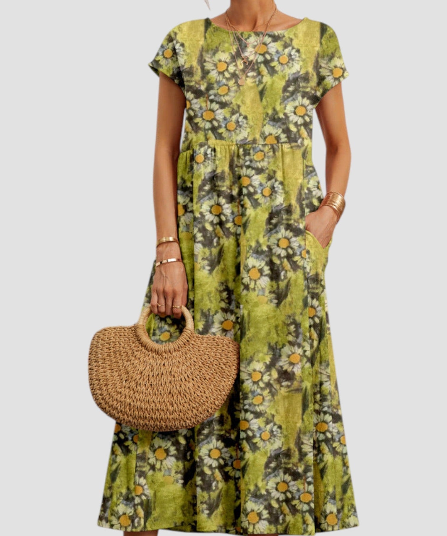Nelia - Vasaros suknelė su apvaliu kaklu ir gražiu raštu