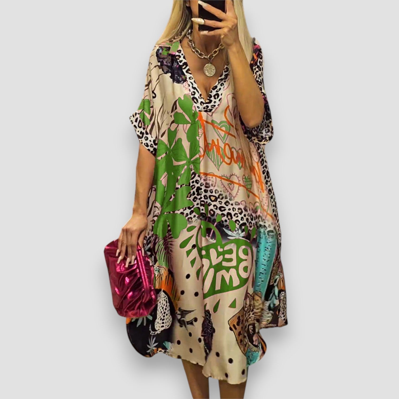Madelina - Elegantiška daugiaspalvė vasaros suknelė