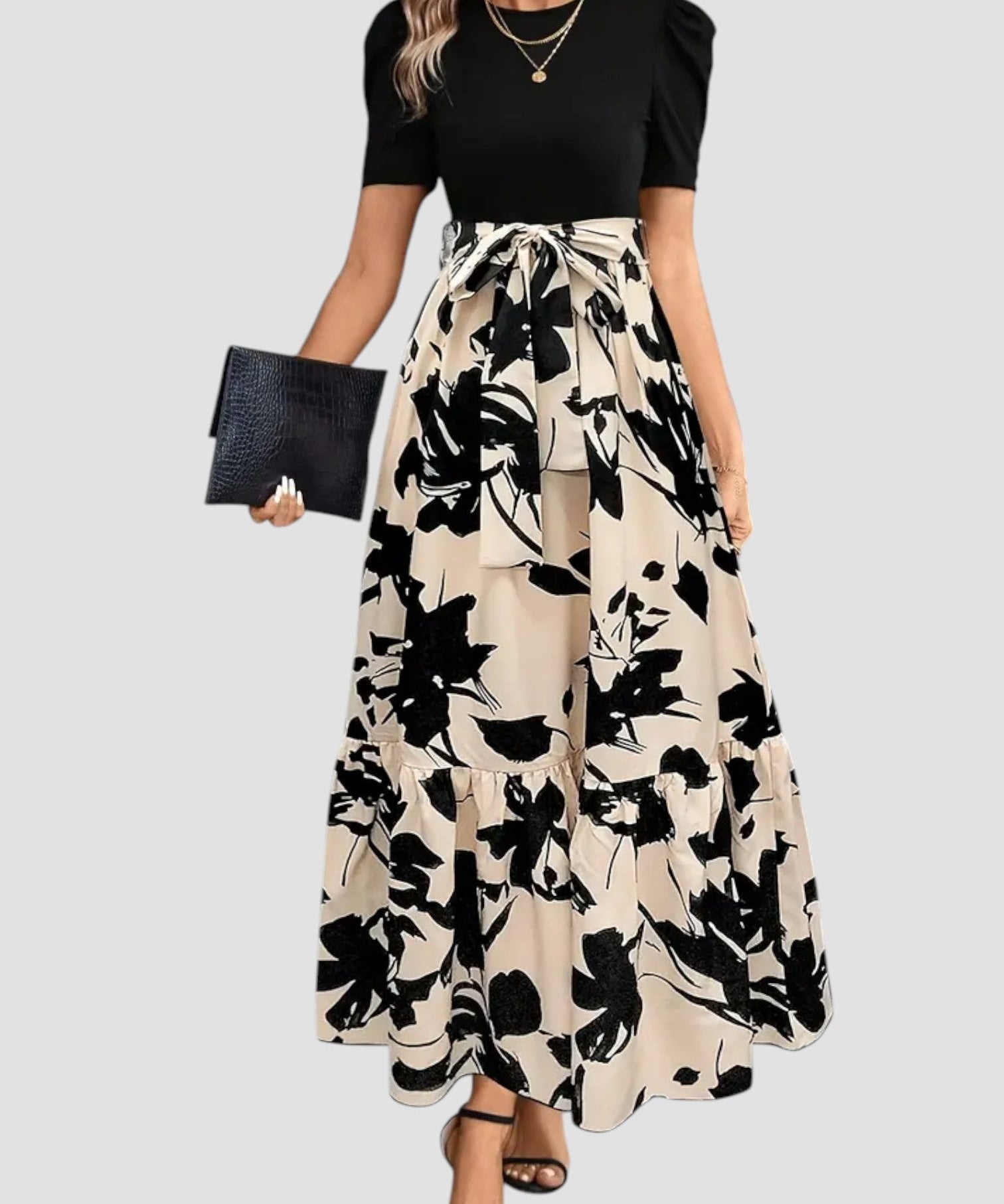 Katty - Midi gėlėtas suknelė su pūstomis rankovėmis ir V formos iškirpte