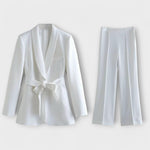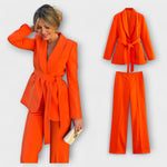 Atraskite galutinį stilių ir komfortą su mūsų moterų Lena komplektu. Šis dviejų dalių komplektas susideda iš ilgos švarko su diržu, kuris pabrėžia liemenį, ir aptemptų kelnių – idealiai tinka tiek formalios, tiek kasdienės progos. Pagamintas iš aukštos kokybės medžiagų, užtikrinančių kvėpavimą ir komfortą, nesvarbu, ar esate biure, ar vakariene.