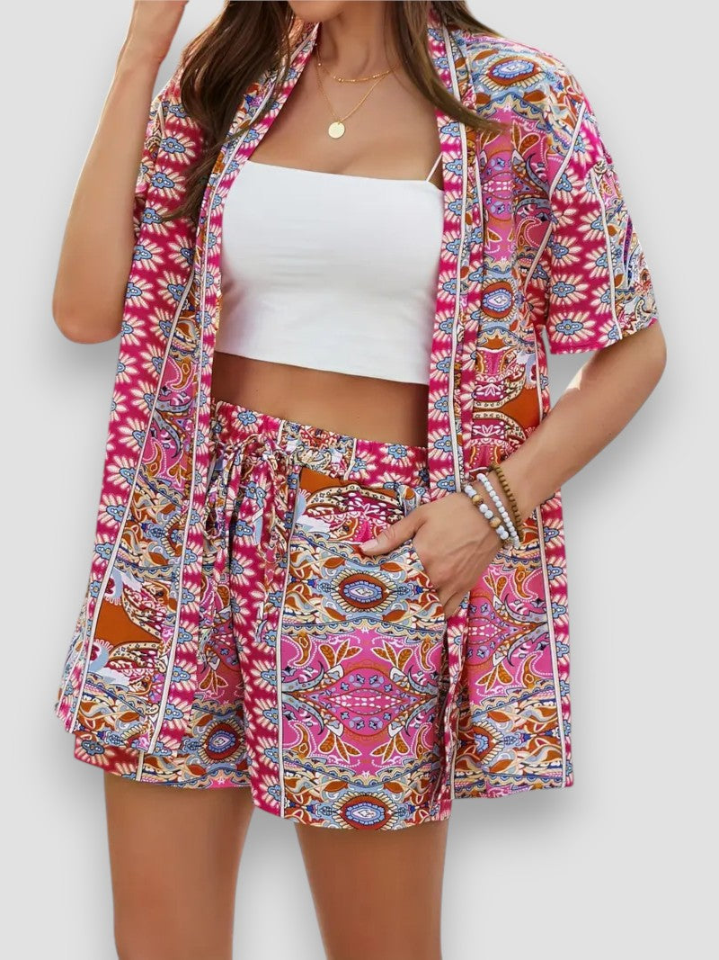 Sienna komplektas siūlo atsipalaidavusį, bet stilingą įvaizdį, puikiai tinkantį šiltesnėms dienoms. Plati siluetas ir subtilūs detalės sukuria rafinuotą išvaizdą, nesumažinant komforto.