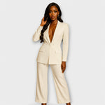 Įženk į elegancijos ir rafinuotumo pasaulį su šiuo moterišku kostiumu – idealiai tinka šiuolaikinėms moterims, vertinančioms madą ir universalumą. Su prigludusia švarka ir elegantiškomis kelnėmis, ši apranga sujungia madingą dizainą ir laiko patikrintą patrauklumą.