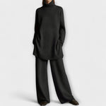 Šis moteriškas loungewear komplektas sujungia komfortą ir stilių tavo kasdienėje spintoje. Su patogia viršutine dalimi ir priglundančiais kelniais, gauni tobulą pusiausvyrą tarp poilsio ir modernios išvaizdos.