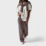 Patirkite maksimalų komfortą su Amelie komplektu, kuris puikiai derina švelnumą ir šilumą. Šis prabangus komplektas užtikrins jums komfortą ir šilumą šaltomis dienomis, tuo pačiu suteikdamas elegancijos jūsų kasdieniams įvaizdžiams. Dėl universalaus dizaino, lengvai derinamo su bet kokiu garderobu, Amelie komplektas yra puikus pasirinkimas atsipalaidavimo dienoms namuose ar neformalios išvykos.
